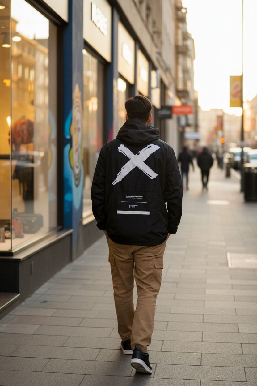 Anorak rompeviento Ocn. Unisex. El modelo es de poliéster con red en su interior, tanto en capucha, cuerpo y mangas. Estilo anorak. Bolsillo frontal estampado con velcro y lateral. Manga con puños, cierre frontal y reguladores en cintura. Estampado en espalda con un diseño exclusivo de la marca. Color: Negro.