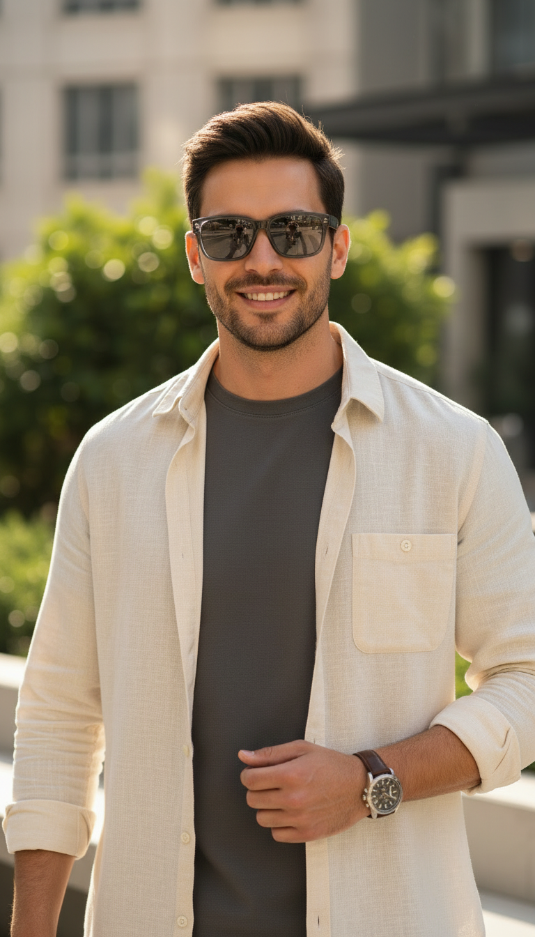 Anteojos de sol unisex OCN en amarillo con marcos grises. Fabricados con acetato biodegradable, ideales para la playa y el uso diario. Incluyen estuche y tela limpiadora.