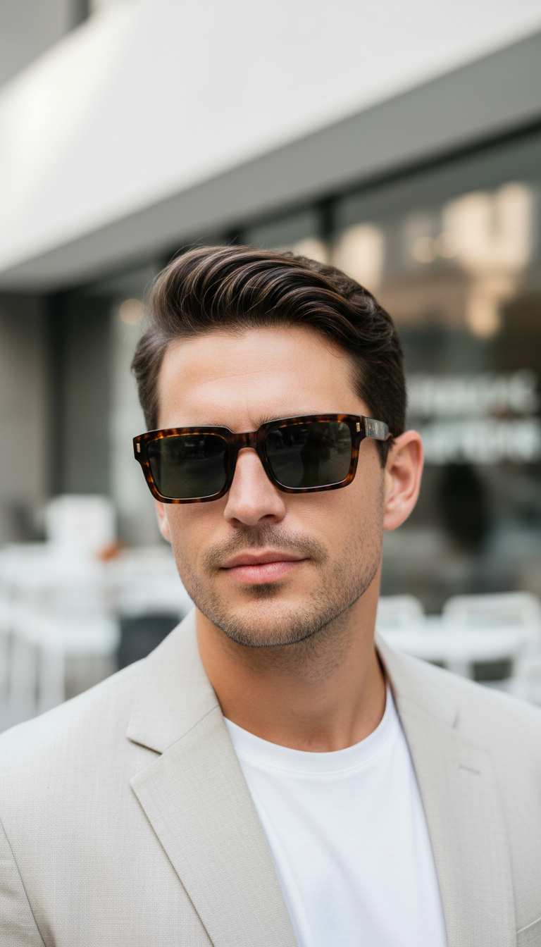 Anteojos de sol OCN negro con marco marrón. Incluye estuche y paño limpiador. Unisex y versátil para playa o uso cotidiano, con armazón de acetato ecológico. Protección y estilo clásico en cada uso.