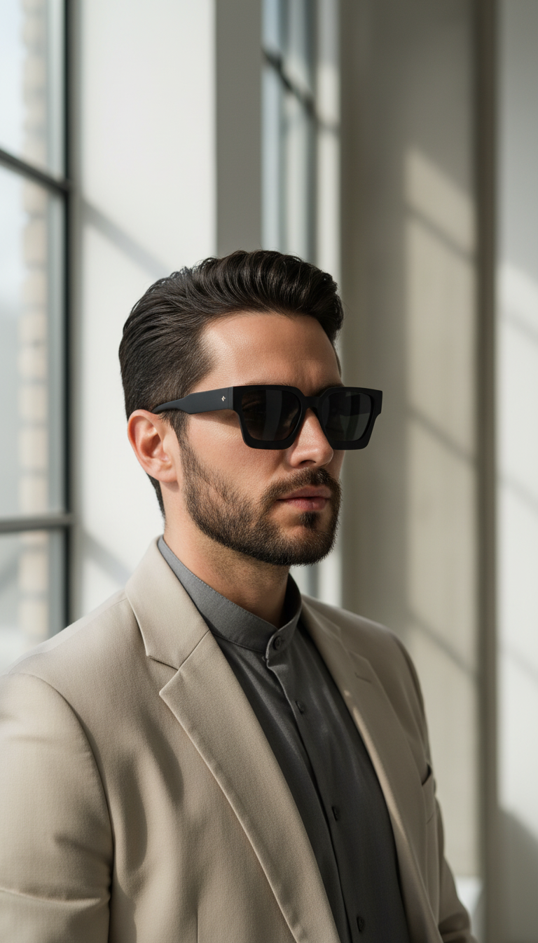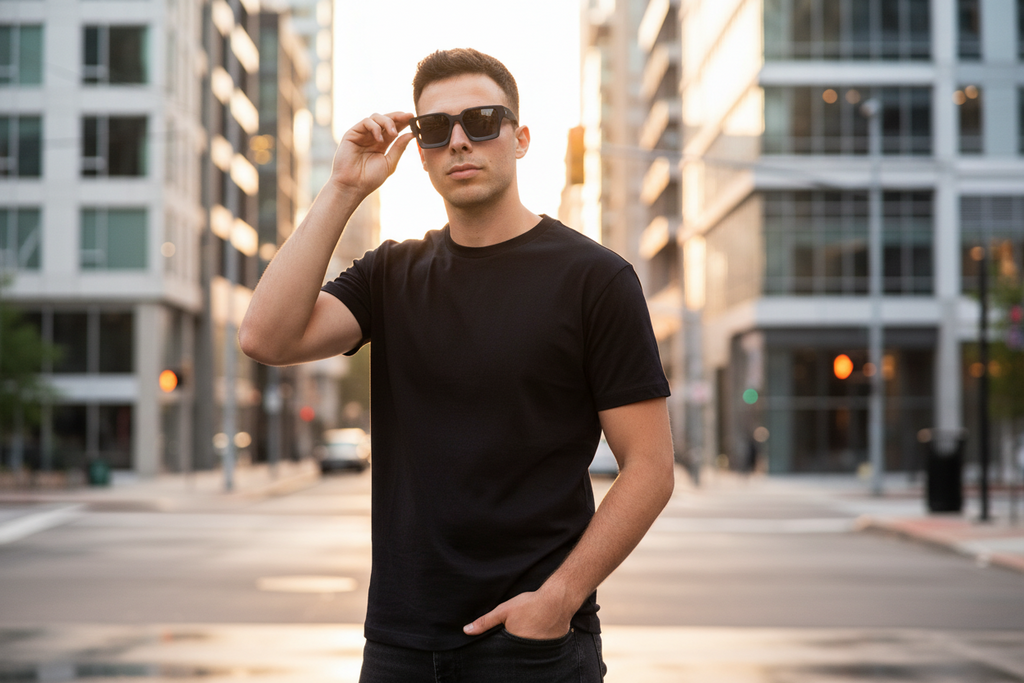 Anteojos de sol unisex OCN en negro con marco opaco de acetato biodegradable. Incluye estuche y tela limpiadora. Perfectos para la playa o uso diario, combinan estilo con responsabilidad ambiental.