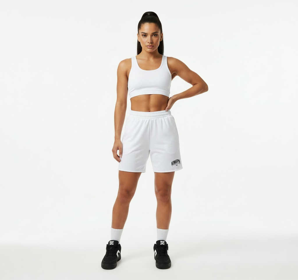 Short Kingpin en Blanco confeccionado en algodón sin frisa. Cintura elástica que garantiza ajuste ergonómico y estable. Transpirable, duradero y versátil para cualquier ocasión. La pieza esencial de tu guardarropa casual.