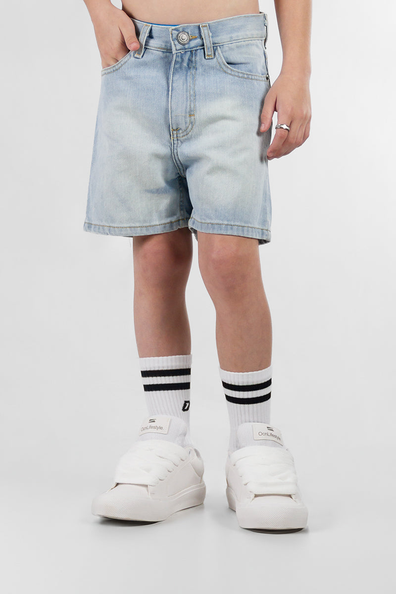 Bermuda Ocn Kids , color de la prenda en un tono Celeste , ajuste en la cintura con boton y cierre.