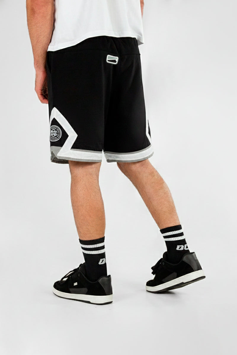 Material: sire (Fino y Fresco para el Verano). Bermuda en color Negro , borde en Color Blanco, y gris los costados de la prenda sobre la terminacion, elástico en la cintura y ajuste con cordones Negros combinando con los detalles de la Bermuda.