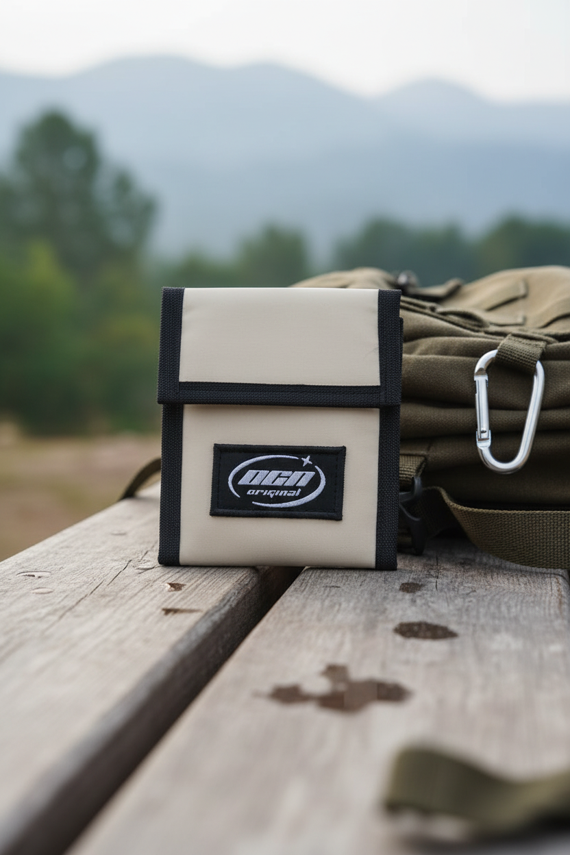 Billetera Ocn Andorra en beige con múltiples compartimentos para tarjetas y billetes. Diseño práctico y funcional que se adapta a tu día a día.