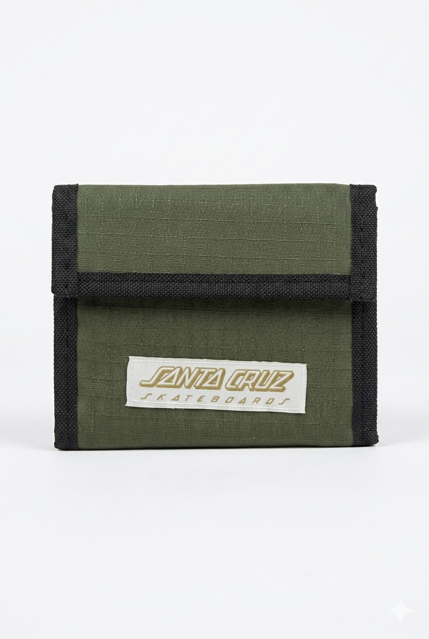 Billetera Santa Cruz Classic Strip Patch Velcro confeccionada en tejido ripstop de 100% poliéster, resistente y duradero. Cuenta con etiqueta de marca bordada y aplique estampado que le dan un acabado premium. Diseño funcional con espalda equipada con cierre para monedero, permitiendo guardar tus monedas de forma segura. El frente incorpora velcro para un cierre rápido y práctico. Incluye grifa de marca interna que certifica su autenticidad. Ideal para quienes buscan una billetera resistente, compacta y con estilo.