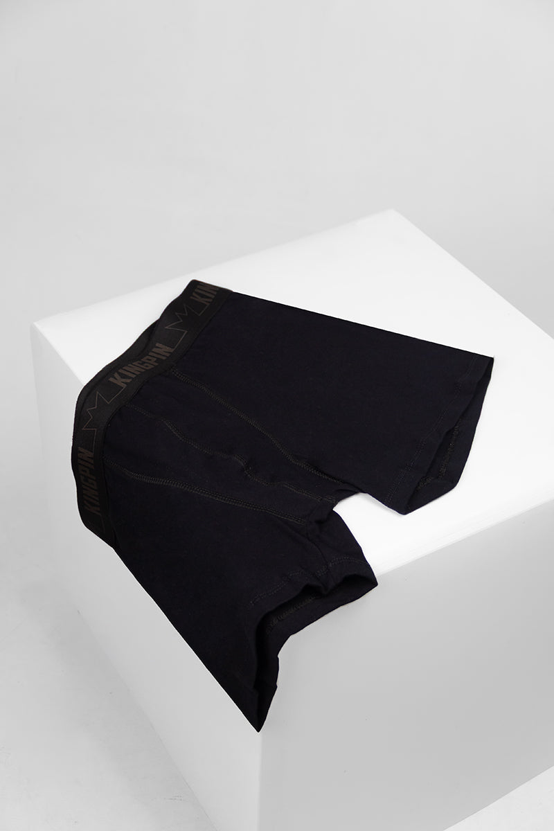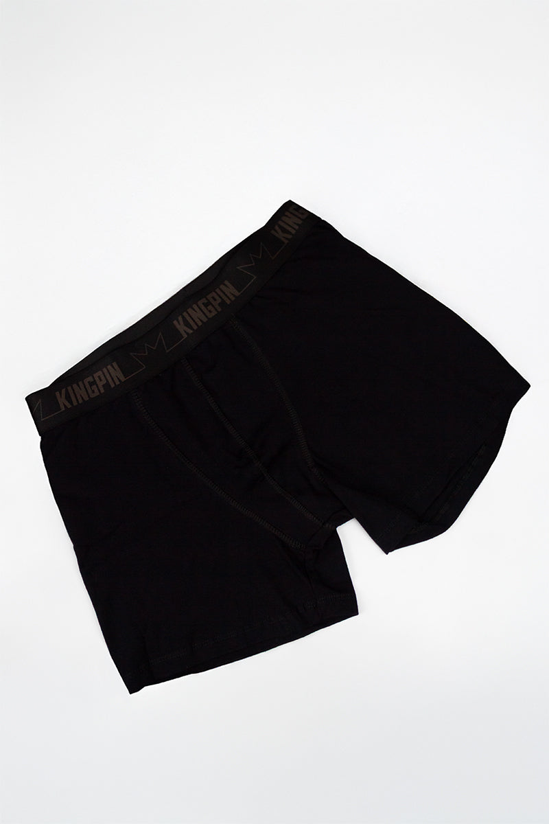 Bóxer Kingpin de color negro combinado con naranja. Cuenta con elástico de la marca para un mejor ajuste y viene con costuras reforzadas para que te sientas seguro y cómodo en cada uso. ¡Le sobra onda y se adecúa a todo contexto!