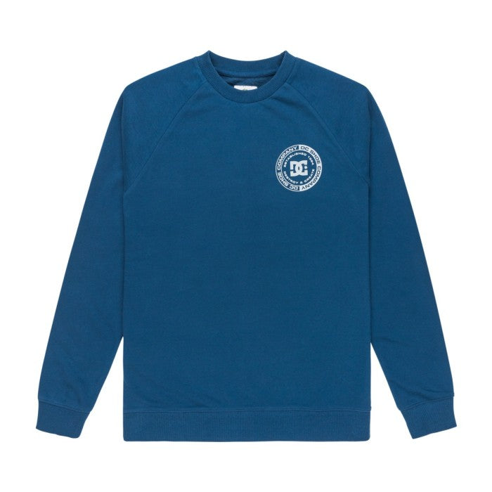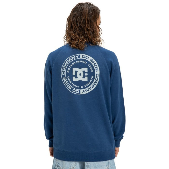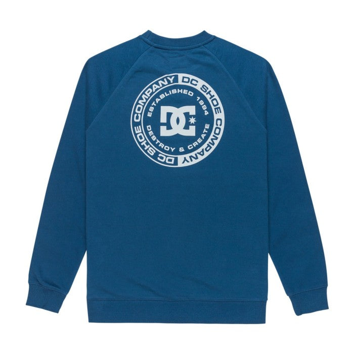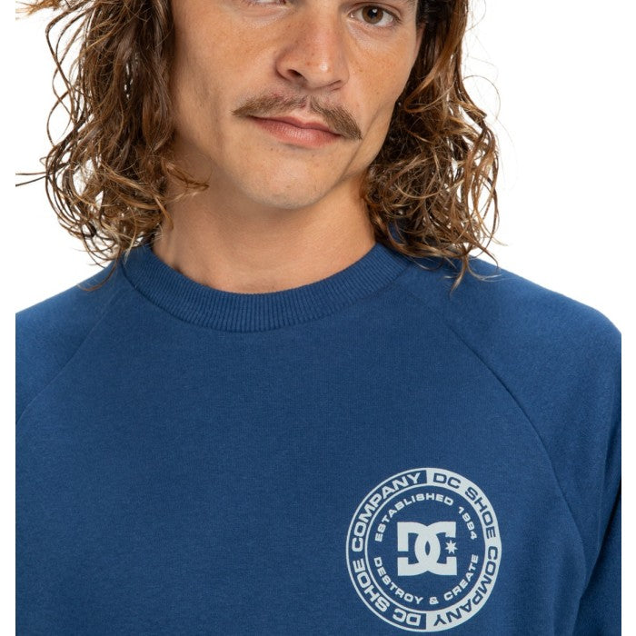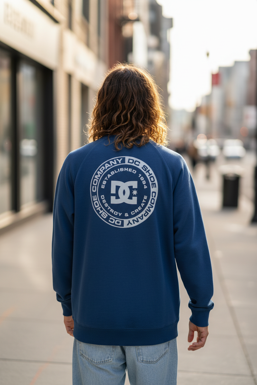 Buzo de cuello redondo confeccionado en frisa de peso medio, combinando algodón, algodón reciclado y poliéster reciclado para mayor durabilidad y conciencia ambiental. Diseño con mangas raglan que proporciona comodidad y libertad de movimiento, puños en rib para un ajuste seguro y acabado prolijo. Fit standard que se adapta a diferentes tipos de cuerpo. Cuenta con arte estampado en el pecho y espalda, junto con avíos DC que le dan un toque distintivo. Prenda versátil ideal para el día a día.
