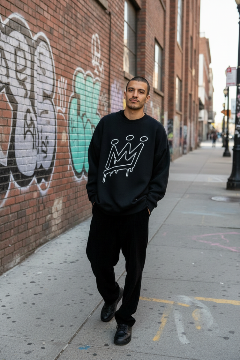 Buzo King Of Art Negro con estampa en el pecho y en la espalda. Con capucha y bolsillo canguro.