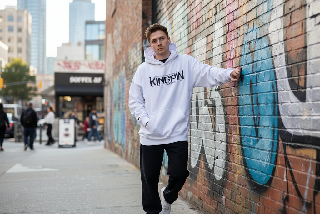 El Buzo Canguro Kingpin Over Hood Blanco es una prenda cómoda y moderna. Cuenta con estampado al frente para agregar un look moderno y clásico. El buzo es 100% algodón para ofrecer una sensación fresca y suave. ¡Es su elección ideal para un look casual desenfadado!