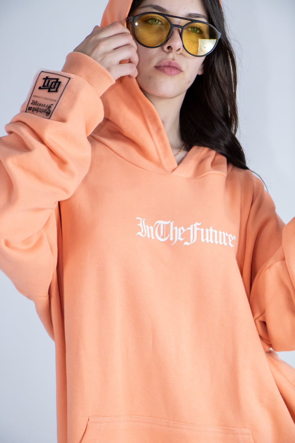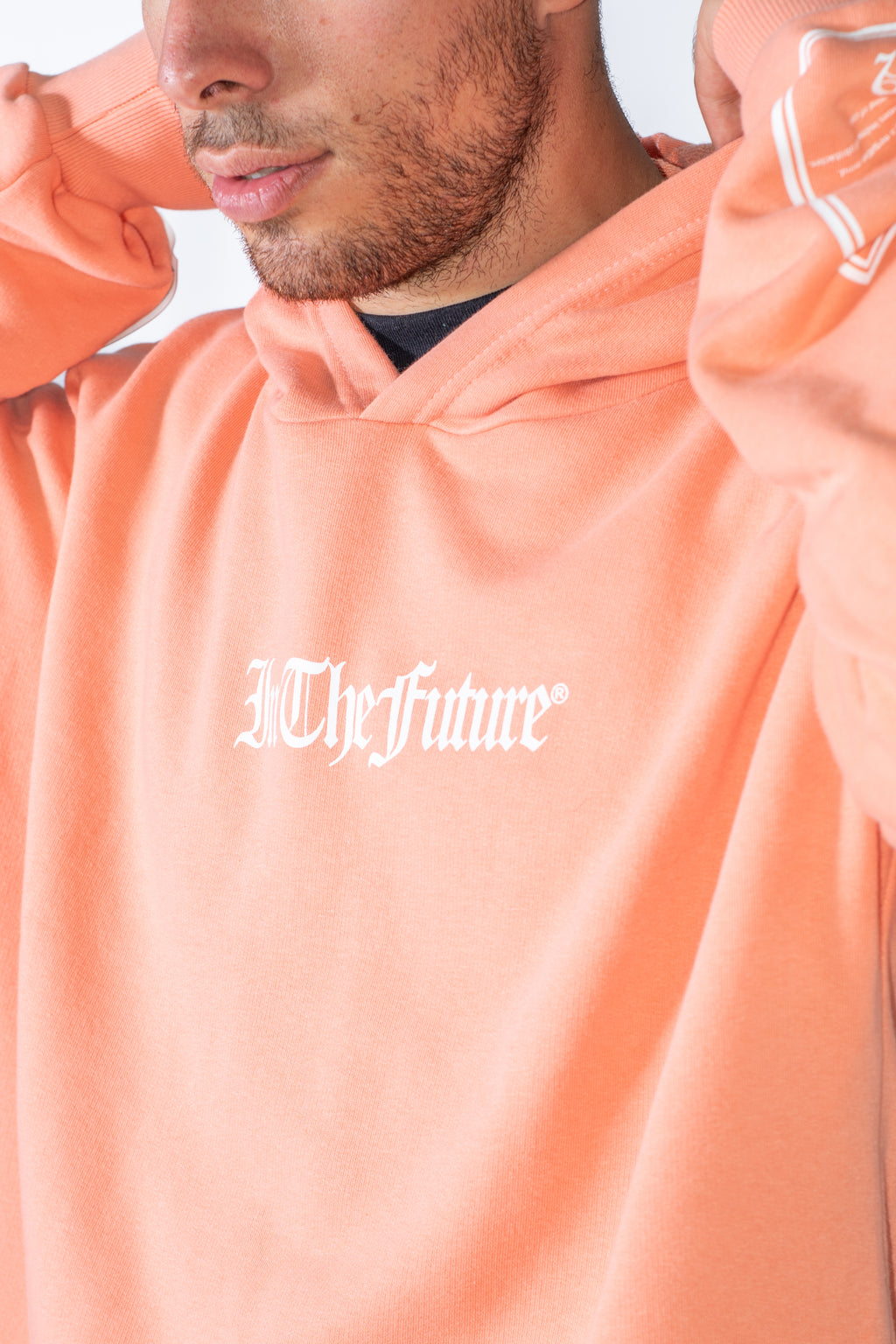 Buzo OCN Gothic Coral con capucha y bolsillos canguro, sin frisa, con estampado en pecho y en espalda completa, ideal para el verano!