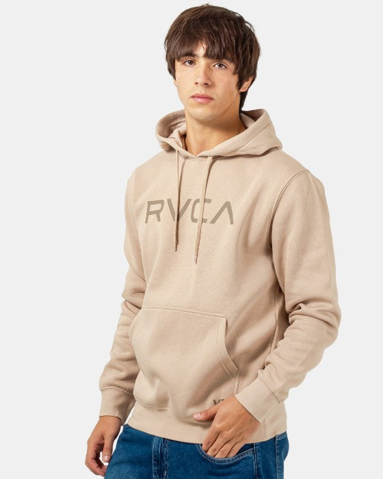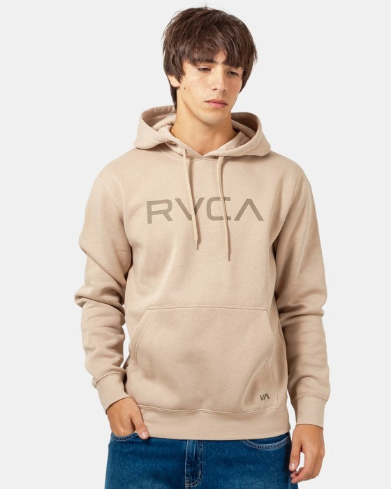 Buzo de corte estándar confeccionado en mezcla de algodón de 300 g/m² que combina comodidad y durabilidad. Cuenta con bolsillos canguro funcionales, puños y dobladillo acanalados para un ajuste seguro. Destaca la serigrafía RVCA en el pecho y el logo VA en la parte inferior del bolsillo. Composición: 80% algodón, 20% poliéster, garantizando transpirabilidad y resistencia al lavado frecuente.