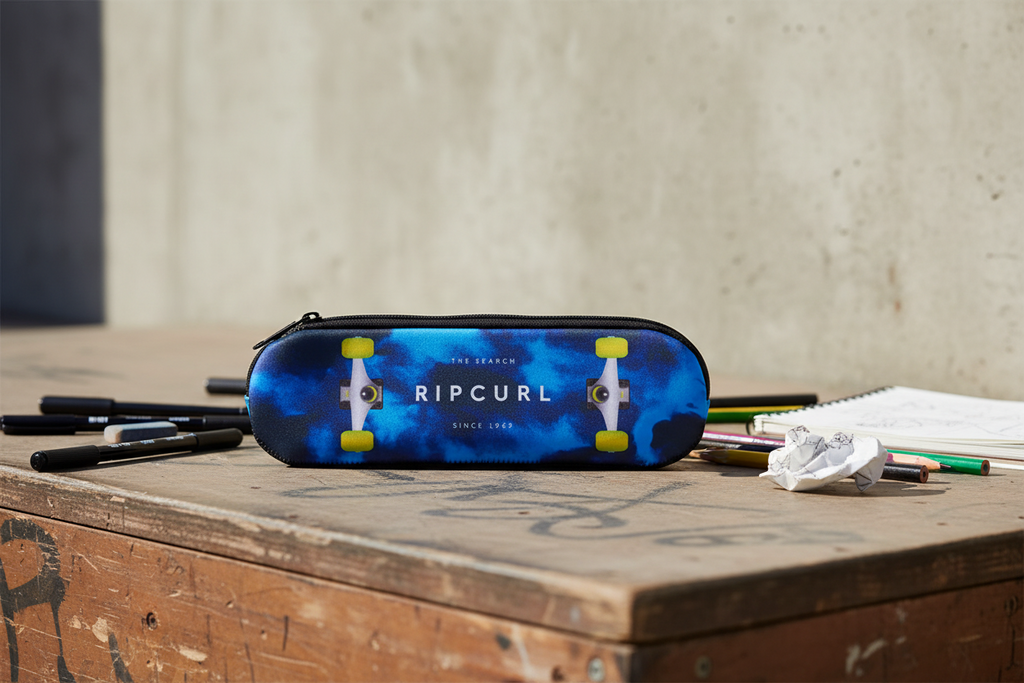 Duradera y resistente, la cartuchera Rip Curl es ideal para guardar tus útiles. Su forma de skate le da toda la onda y lleva interior con etiqueta para que puedas agregarle tu nombre.