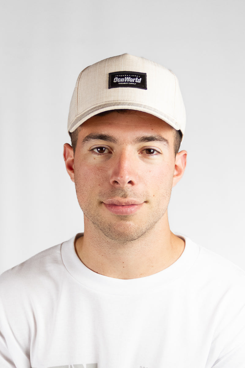 Gorra Ocn. Color Beige, con logo frontal y tira reguladora atrás.