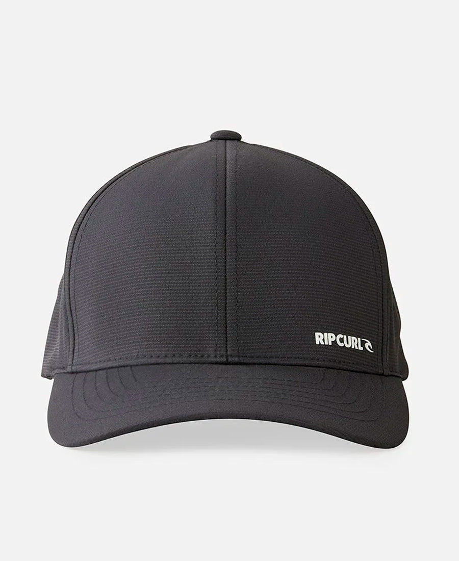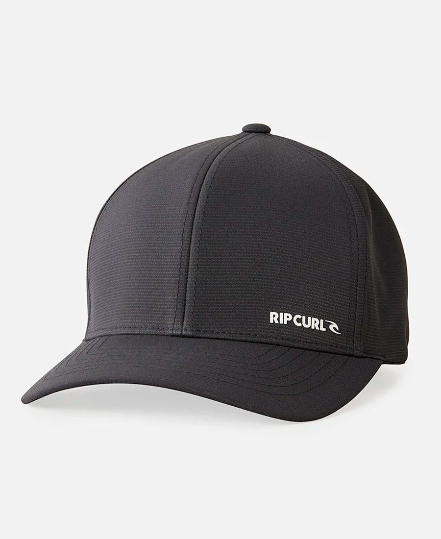 Gorra Rip Curl Phaser en negro, diseñada para máximo rendimiento y comodidad. Fabricada en poliéster micro dobby con spandex, ofrece flexibilidad y durabilidad. Perfil medio con visera curva estructurada que proporciona protección óptima del sol. Equipada con ventilaciones transpirables cortadas con láser para una circulación de aire superior, mantiene la cabeza fresca durante actividades intensas. El logotipo frontal soldado garantiza resistencia al desgaste. Tecnología resistente al agua y absorción de humedad para mantener la sequedad en cualquier condición. Ajuste flexible Flexfit que se adapta a diferentes formas de cabeza, asegurando comodidad durante todo el día.