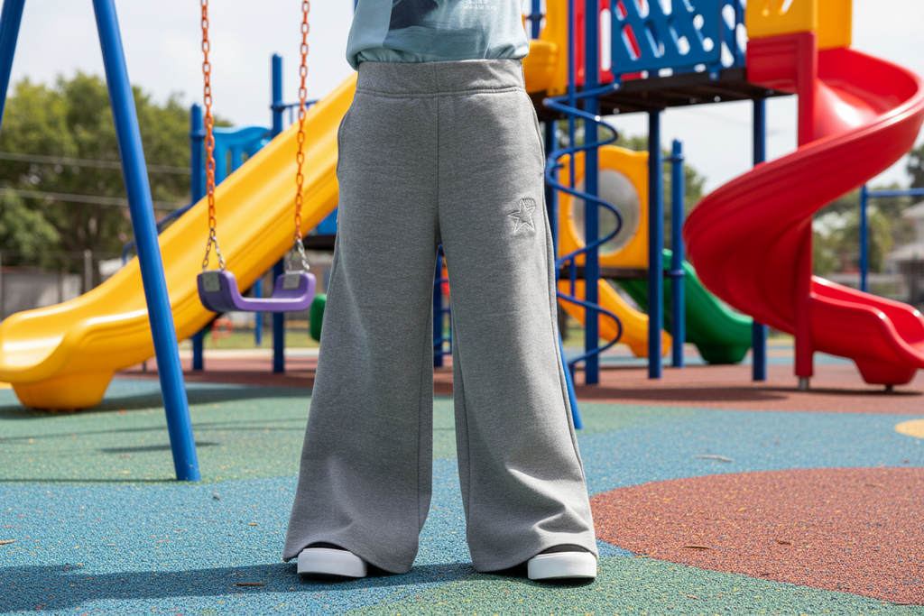 Material algodón con frisa. Cintura con elástico y cordón para ajustar en color negro. Color gris