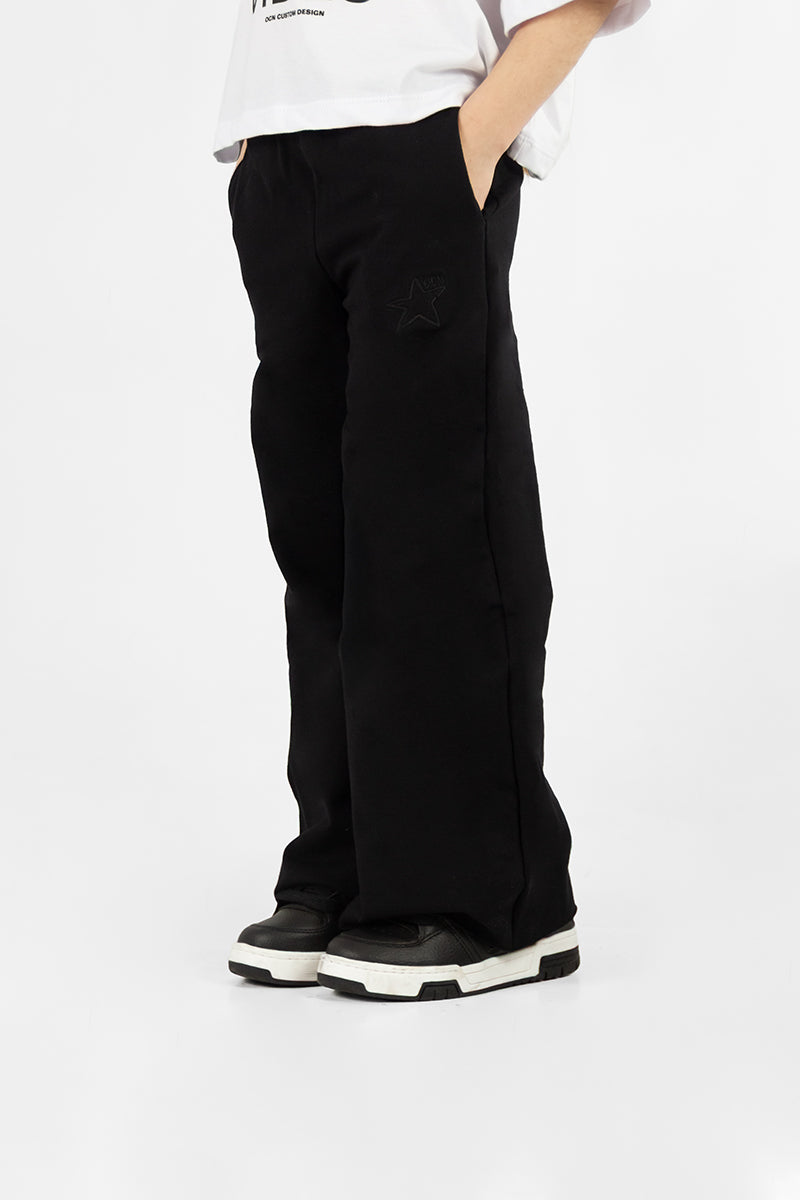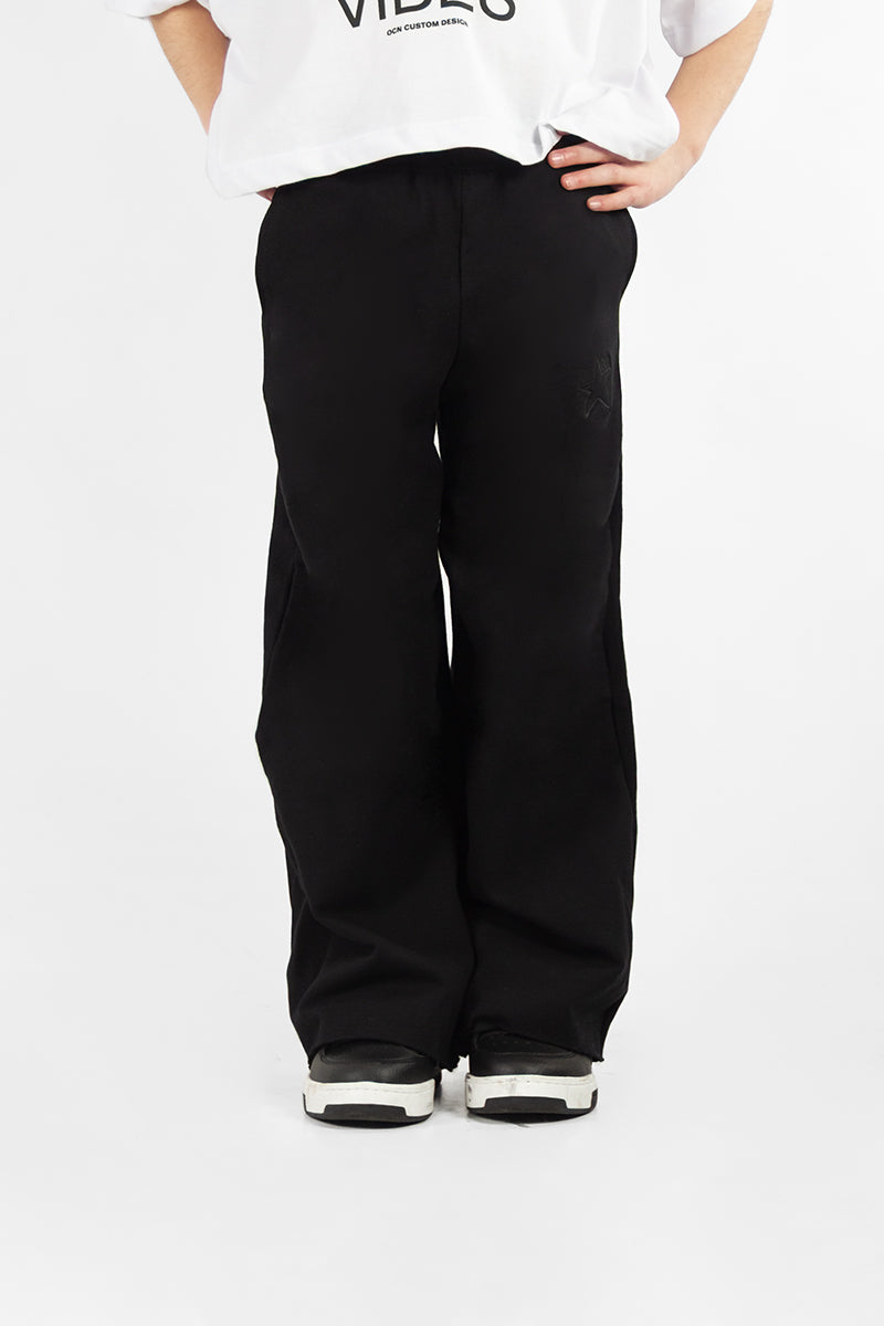 Trotar ocn. Color de prenda negro, material algodón con frisa. El corte del pantalón es clásico sin puños. Tiene cintura con elástico y cordón para ajustar. Cuenta con 2 bolsillos en los laterales. college