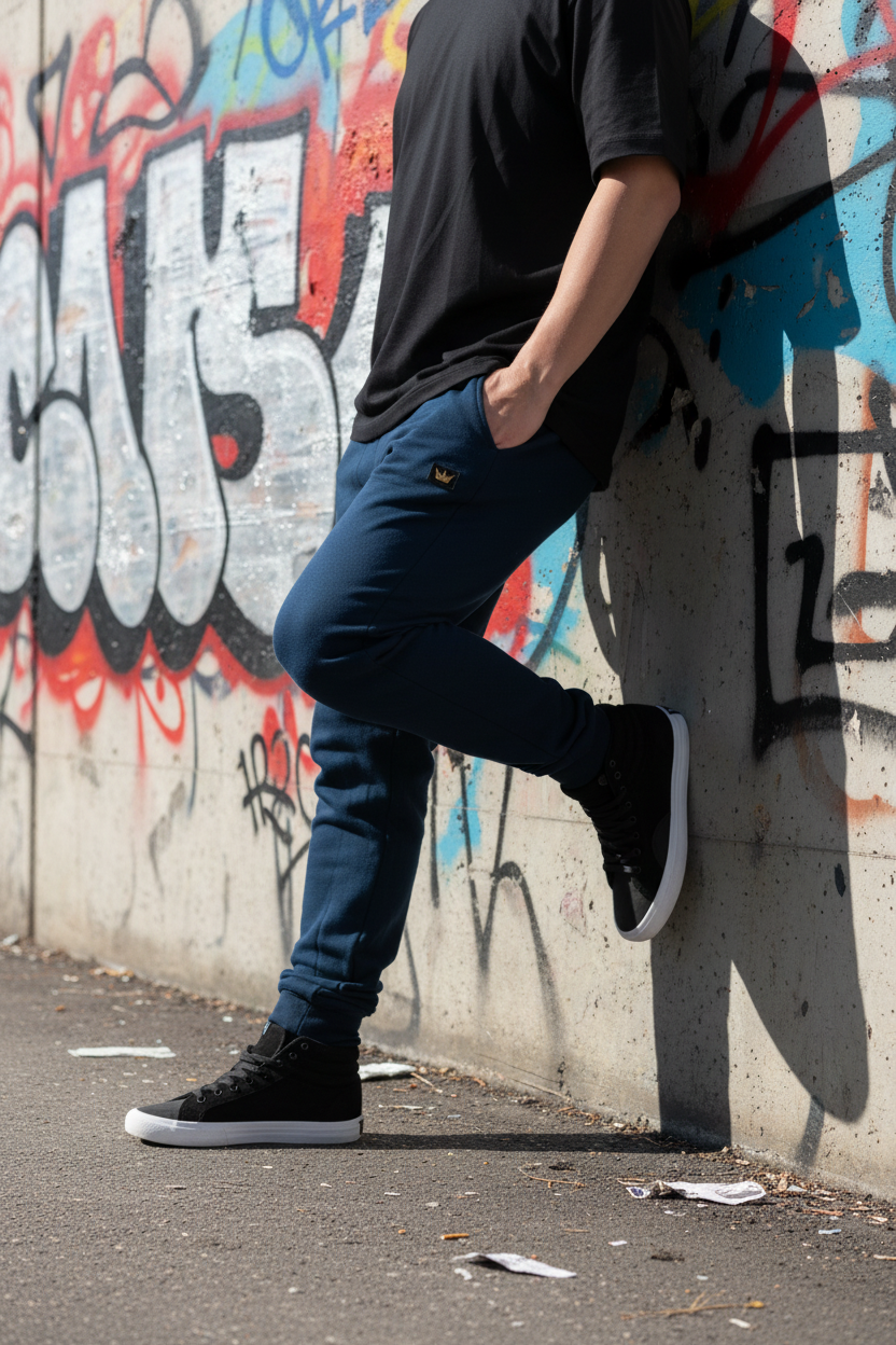 Descubre el confort y el estilo en nuestro Jogging Kingpin Classic Marino Azul. Confeccionado en algodón con frisa, ofrece una sensación suave y transpirable ideal para el día a día. Sus puños y cintura elastizada con cordón ajustable garantizan un calce perfecto, mientras que los dos bolsillos funcionales te permiten llevar tus pertenencias con comodidad.