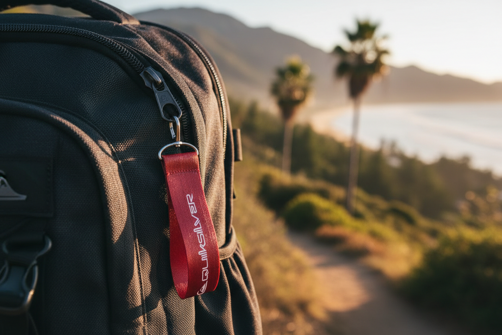 LLavero Quiksilver. Tejido: Cinta sublimada. Mosqueton metálico para llave.