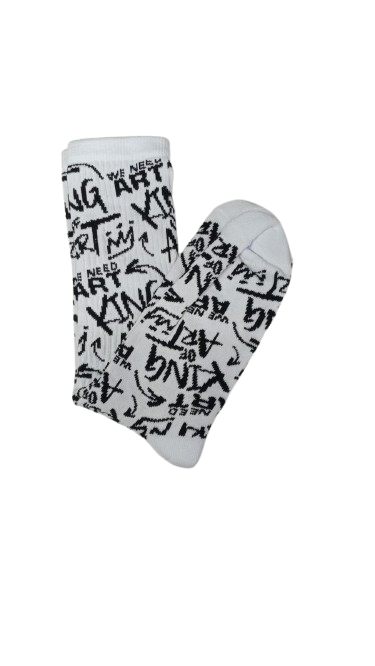 Camina con comodidad con estas medias KING OF ART, vienen en Color Blanco con detalles en Negro como el logo . Son las medias que buscabas y tienen una onda impresionante. No lo dudes más, y llevalas con vos.