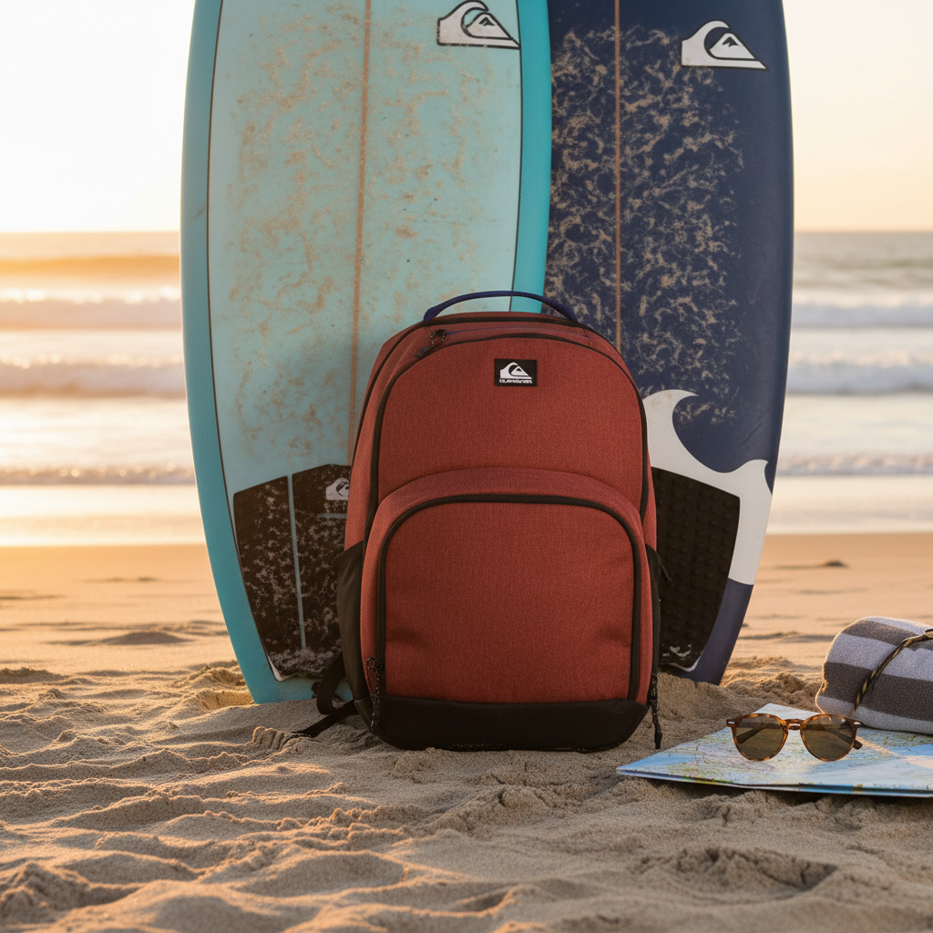 TELA: 100% Poliéster reciclado Mochila 1 compartimiento principal con cierre y bolsillo para laptop 2 bolsillos laterales y 2 bolsillos frontales Correas ergonómicas para hombro ajustables Organizador interior Dimensiones: 49 x 32 x 22 cm Volumen: 28L Producto Importado