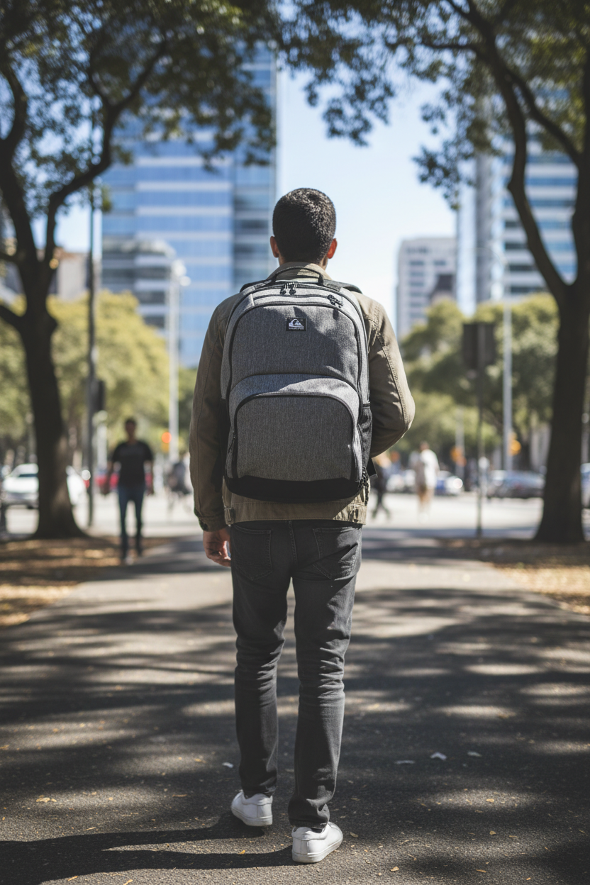 Mochila Quiksilver fabricada en poliéster reciclado con capacidad de 28 litros. Cuenta con compartimento principal, espacio dedicado para portátiles y múltiples bolsillos para organizar tus pertenencias. Las correas acolchadas ajustables garantizan comodidad en cada viaje, mientras que el panel posterior reforzado proporciona soporte adicional. Incluye detalles reflectantes para mayor visibilidad y un organizador interior práctico. Dimensiones: 49 x 32 x 22 cm. Producto importado.