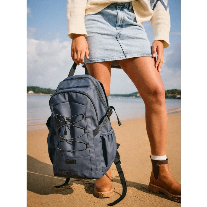 Mochila Roxy JayJay: tu compañera perfecta para cada aventura. Diseñada con tejido acanalado de poliéster resistente y reforzado con base de goma, ofrece una durabilidad excepcional. Cuenta con 2 compartimentos principales con cierre de cremallera, compartimento acolchado especial para portátil y bolsillo superior con cremallera para gafas de sol.