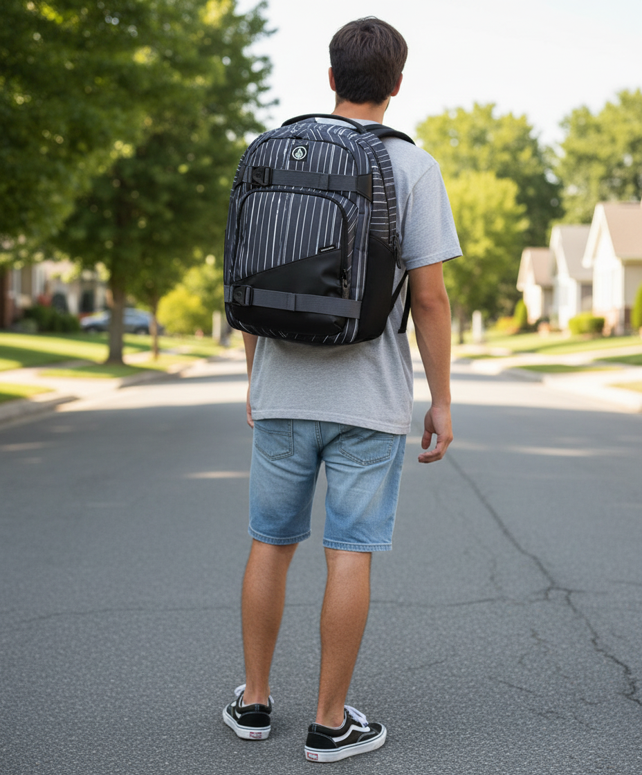 Mochila Volcom Grindstone 23L. Con su diseño de 3 compartimentos, funda acolchada para portátil y correas ajustables para tu tabla, tendrás todo lo que necesitas en un solo lugar. La robusta construcción de poliéster 600D, los materiales recubiertos y el panel trasero ergonómico con forro de malla garantizan una larga duración y un transporte cómodo. 100 % poliéster. Volumen 23 LDimensiones: 47 cm x 30,5 cm x 15 cm (18,5 x 12 x 6 pulgadas).