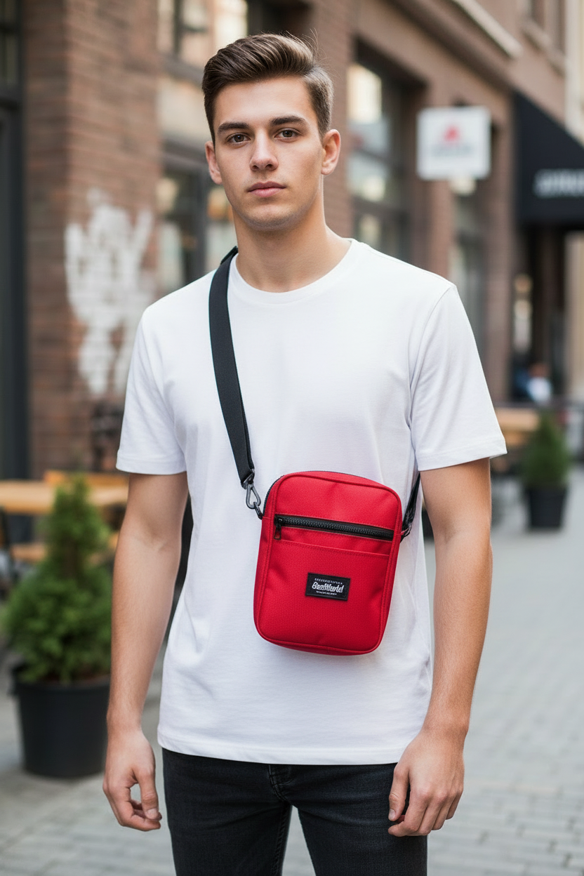Morral Ocn con diseño crossbody en rojo. Cuenta con 3 bolsillos funcionales, 2 de ellos con cierre seguro, y correa ajustable para máxima comodidad. Perfecto para llevar tus esenciales con estilo.