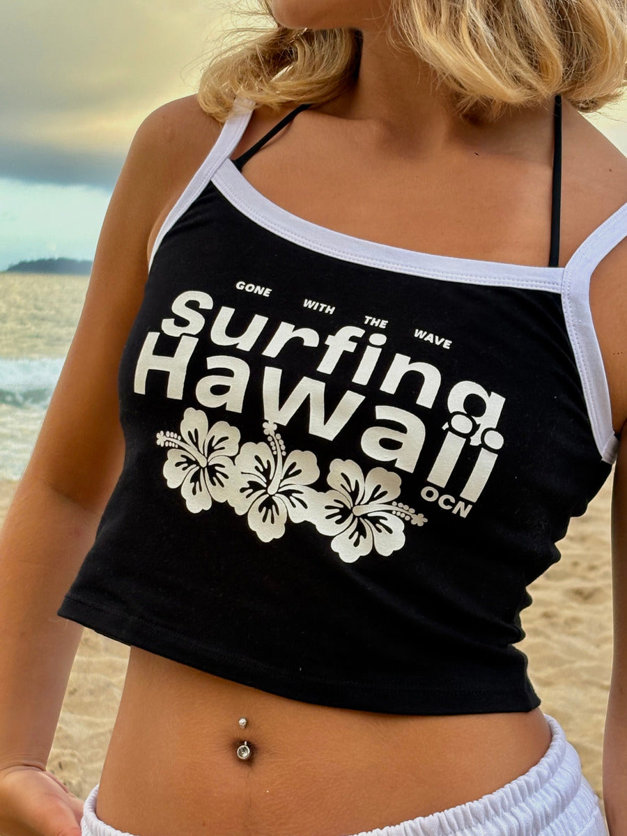 Musculosa Terra Top. Color Negro con Letras Blancas especial para el Verano para lucir con tus mejores looks.