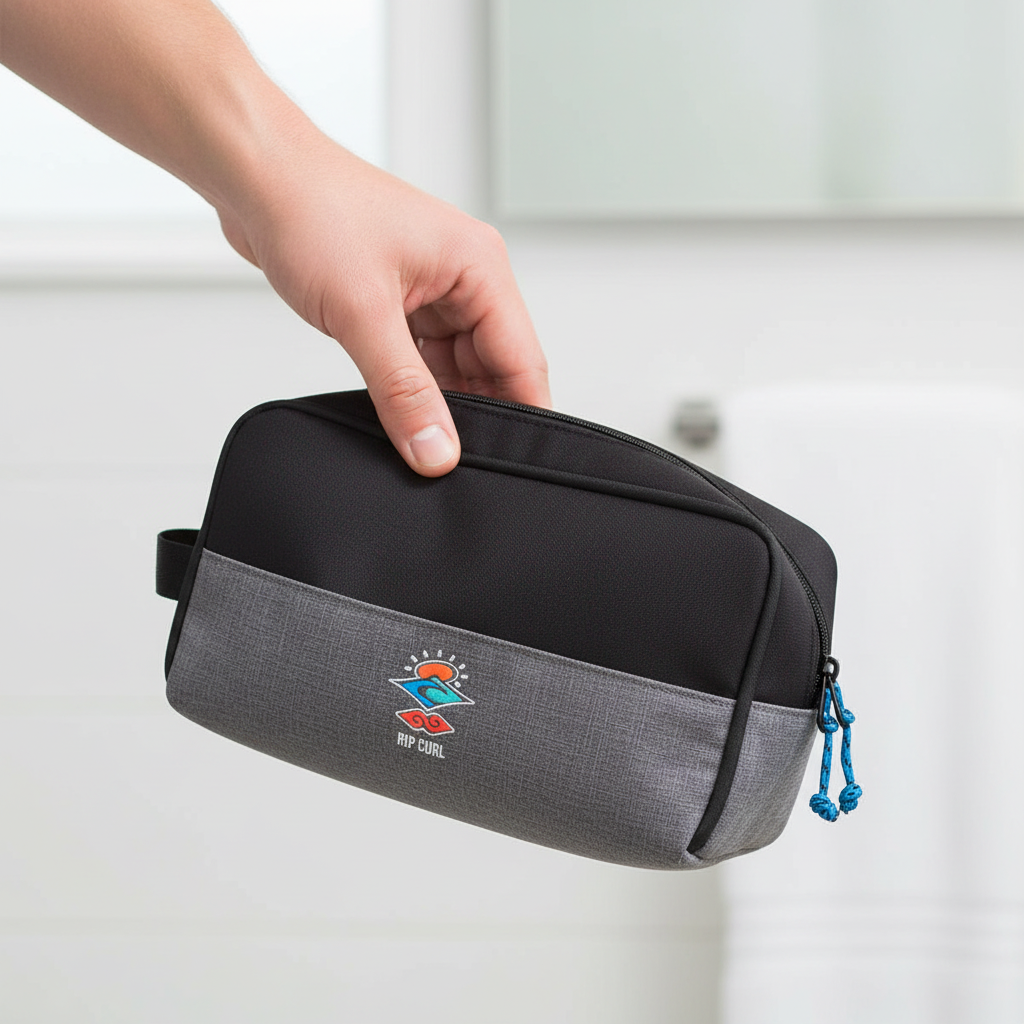 Neceser Rip Curl Groom Toiletry Medianoche. Hydro Protech, tela resistente al agua. Múltiples compartimientos. Manija para transportar.