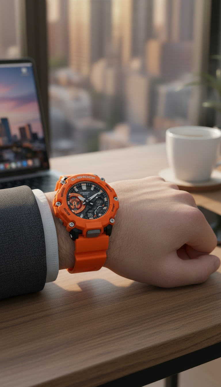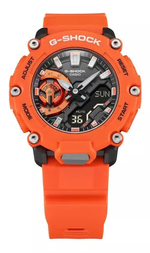 El Casio GA2200M es tu reloj de aventura definitivo. Estructura de carbono, carcasa ultradelgada de 12,4 mm y botones reforzados para máximo control. Dial con acabado metalizado inspirado en discos de freno, resistencia a 200 metros y movimiento de cuarzo. Incluye alarma, cronógrafo y calendario. Compacto, robusto y diseñado para conquistar cualquier terreno.