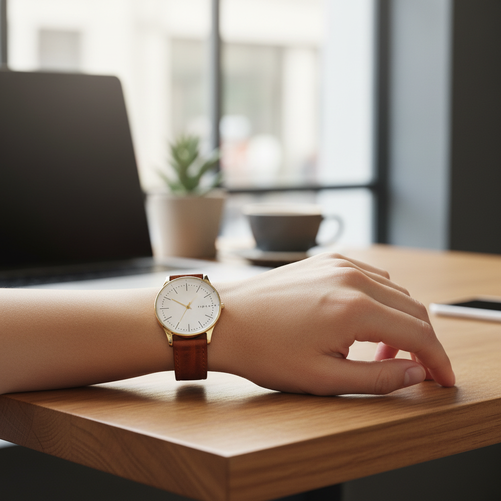 Reloj Rip Curl Supreme Slim Gold para mujer. Movimiento de cuarzo japonés con caja de acero inoxidable marino 316L y cristal mineral endurecido. Correa de cuero de 18 mm con hebilla resistente. Batería de larga duración hasta 60 meses. Esfera elegante con chapado en oro champán 18k IP.
