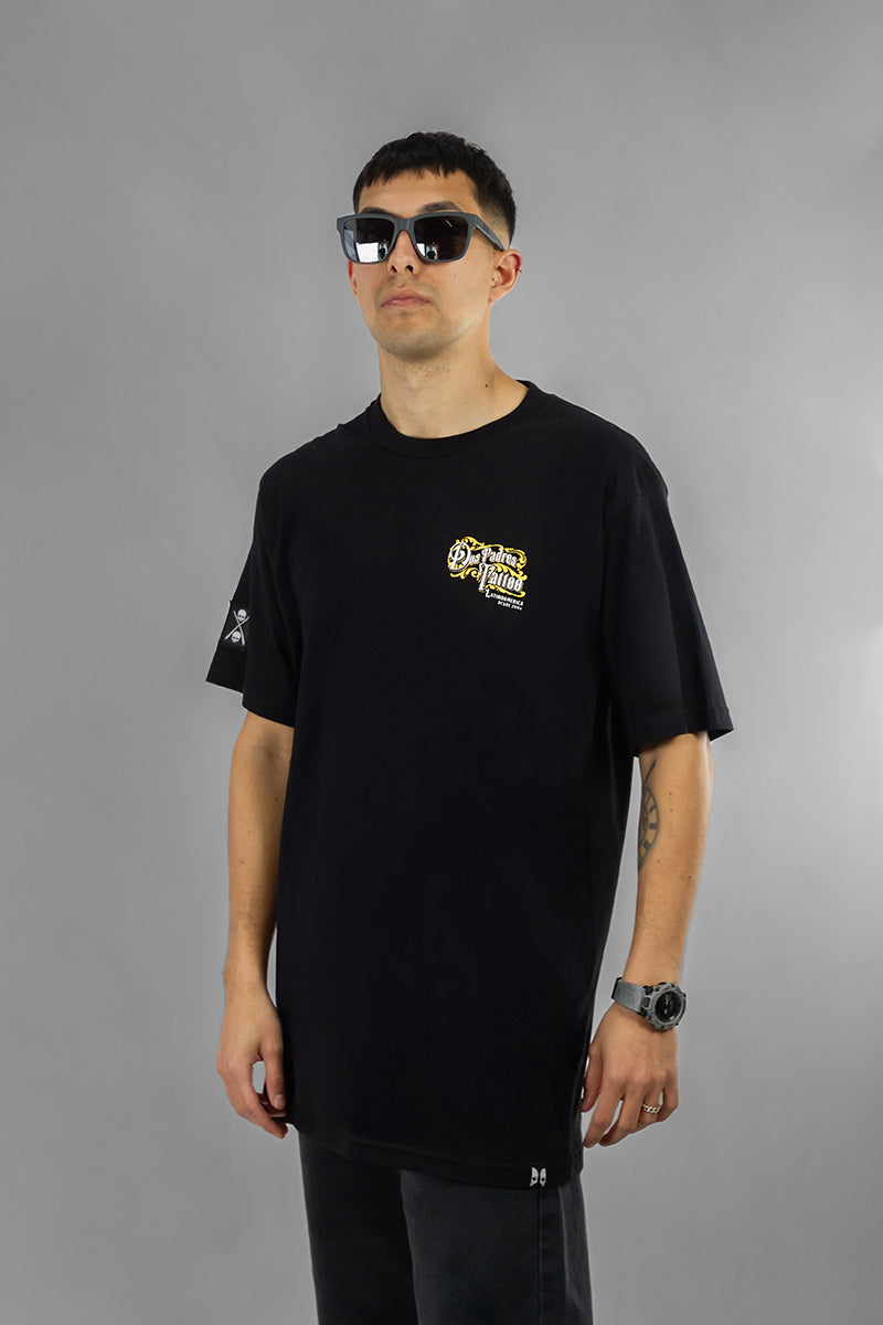 Remera color negro confeccionada en 100% algodón suave y respirable, ideal para el uso diario. Lleva un estampado distintivo en el frente y espalda, aportando identidad y estilo sin perder comodidad.