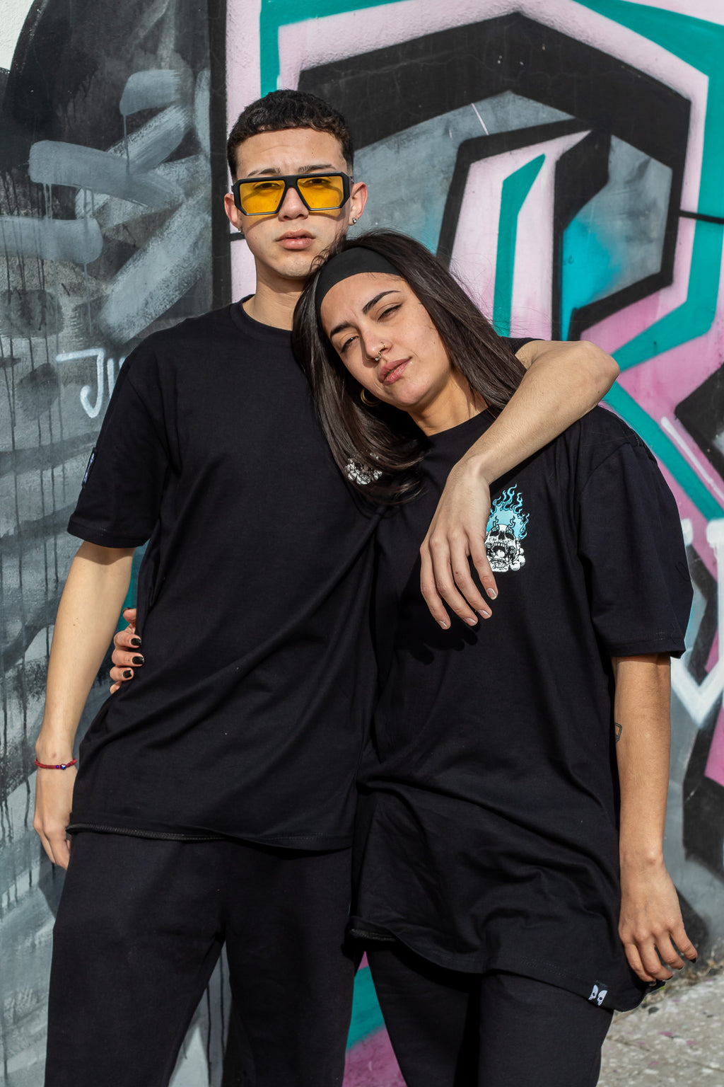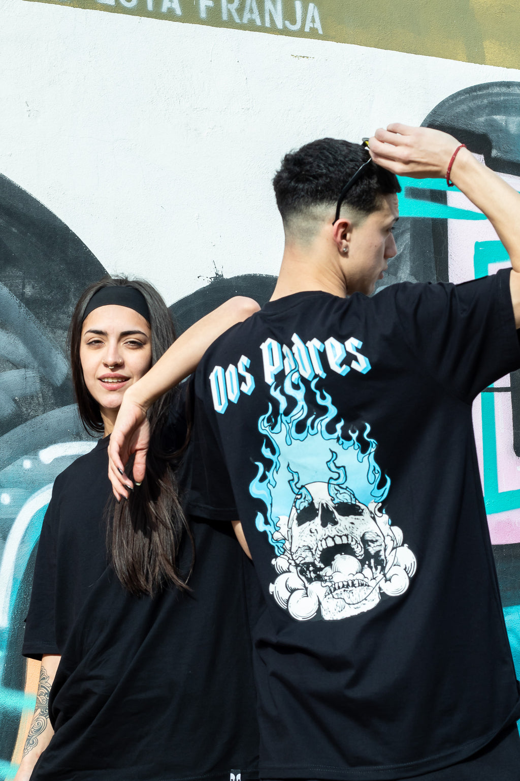Remera Dos Padres. Color Negro . Material: 100% Algodón. Estampa en la parte delantera y trasera de la prenda