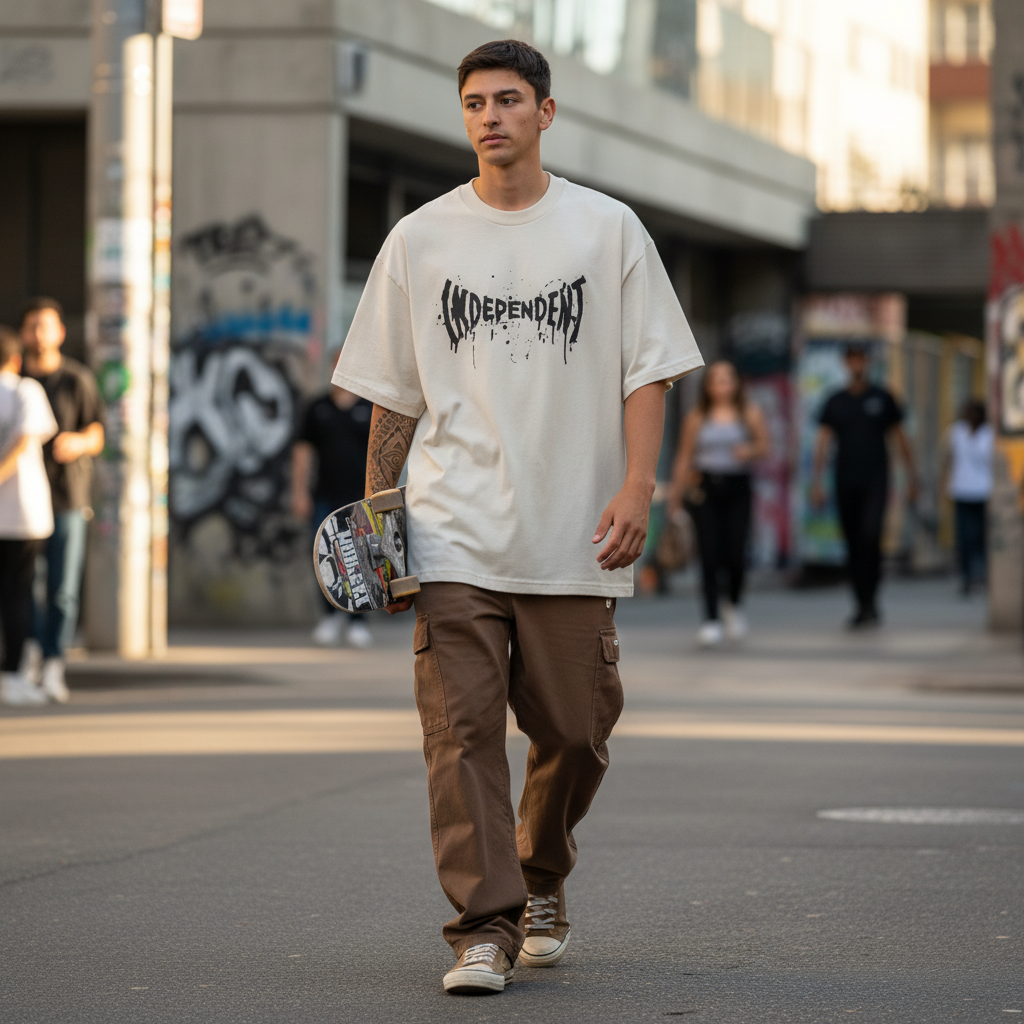Remera Independent Splatter Span: diseño audaz con estampa frontal que te hace destacar. Confeccionada en jersey 16/1 100% algodón, ofrece comodidad total y durabilidad. Corte oversize perfecto para un look relajado y moderno. Cuello reforzado de 3cm, etiqueta de talle y grifo de marca visible. Tu próxima prenda imprescindible para un estilo desenfadado y con personalidad.