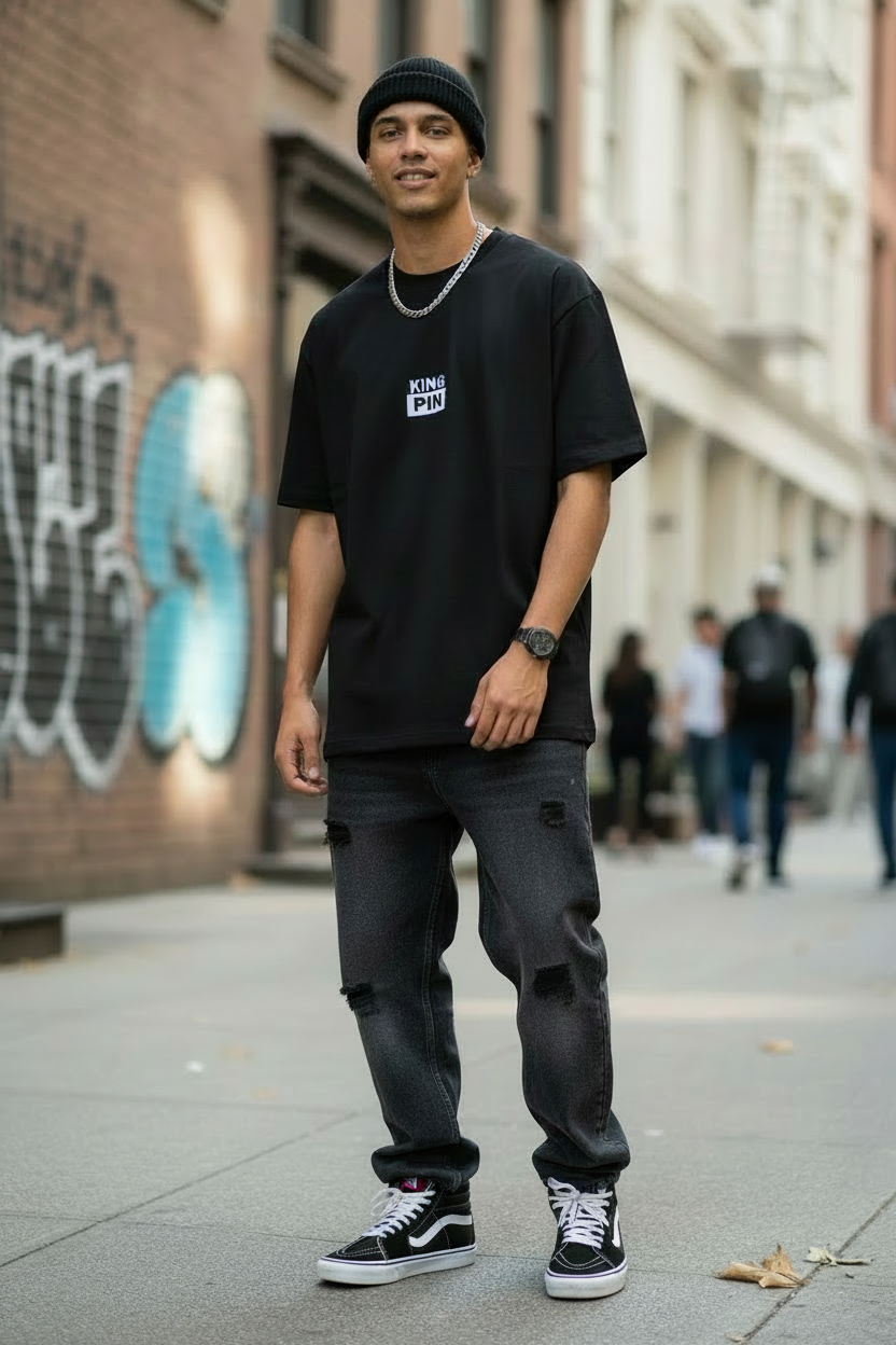 Preparate para conseguir un look único y elegante con esta remera de algodón completamente negra con su estampa moderna en la espalda . Su telas lujosa y estilizada destacan todos los detalles de su diseño, ofreciendo una imagen que seguramente te encantará. Una Prenda clásica que no te puede faltar en tu Guarda ropa.