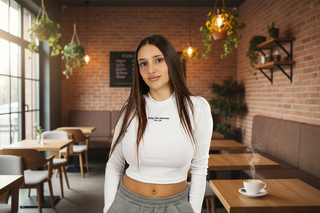 Remera manga larga Ocn Line en blanco. Elaborada en algodón con elastano para máxima comodidad y movimiento. Corte corto y moderno, perfecta para combinar con cualquier look casual.