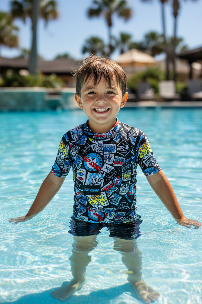 La Remera Rip Curl para niños es ideal para los días de sol y diversión al aire libre. Con manga corta y un diseño con impresión completa que captura toda la energía del verano, está confeccionada con un tejido liviano de 85% poliamida y 15% elastano que ofrece un ajuste cómodo y flexible. Su protección UV FPS 50+ cuida la piel sensible de los más chicos, convirtiéndola en compañera perfecta para la playa o la pileta. Revisa la tabla de tallas en las fotos y prepárate para disfrutar con estilo y protección. ¡Listos para jugar bajo el sol!