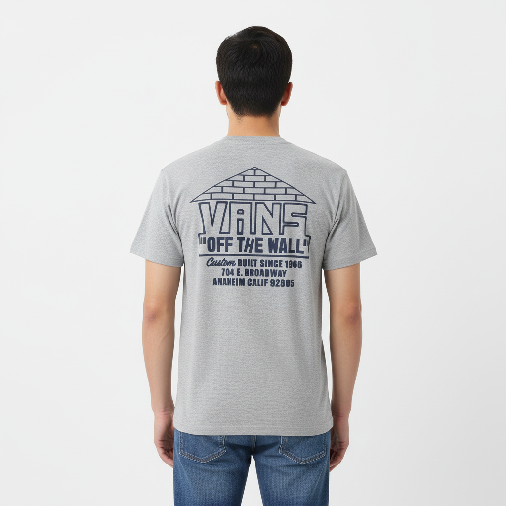 La remera Custom Built Tee color gris presenta un diseño clásico con cuello redondo y calce regular, ideal para un estilo relajado y versátil. Confeccionada en 100% algodón suave, garantiza comodidad durante todo el día. El gráfico "Custom Built", ubicado en el frente y/o la espalda según el modelo, aporta un sello distintivo que rinde homenaje a la estética auténtica de Vans.