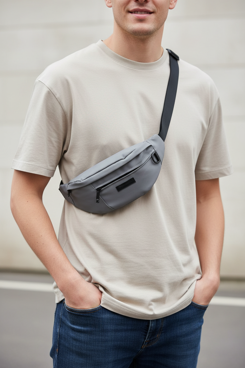 Riñonera Ocn Maui Gris en tela Cordura resistente. Correa ajustable y cierres múltiples para máxima seguridad y comodidad. Perfecta para llevar tus esenciales con libertad de movimiento.