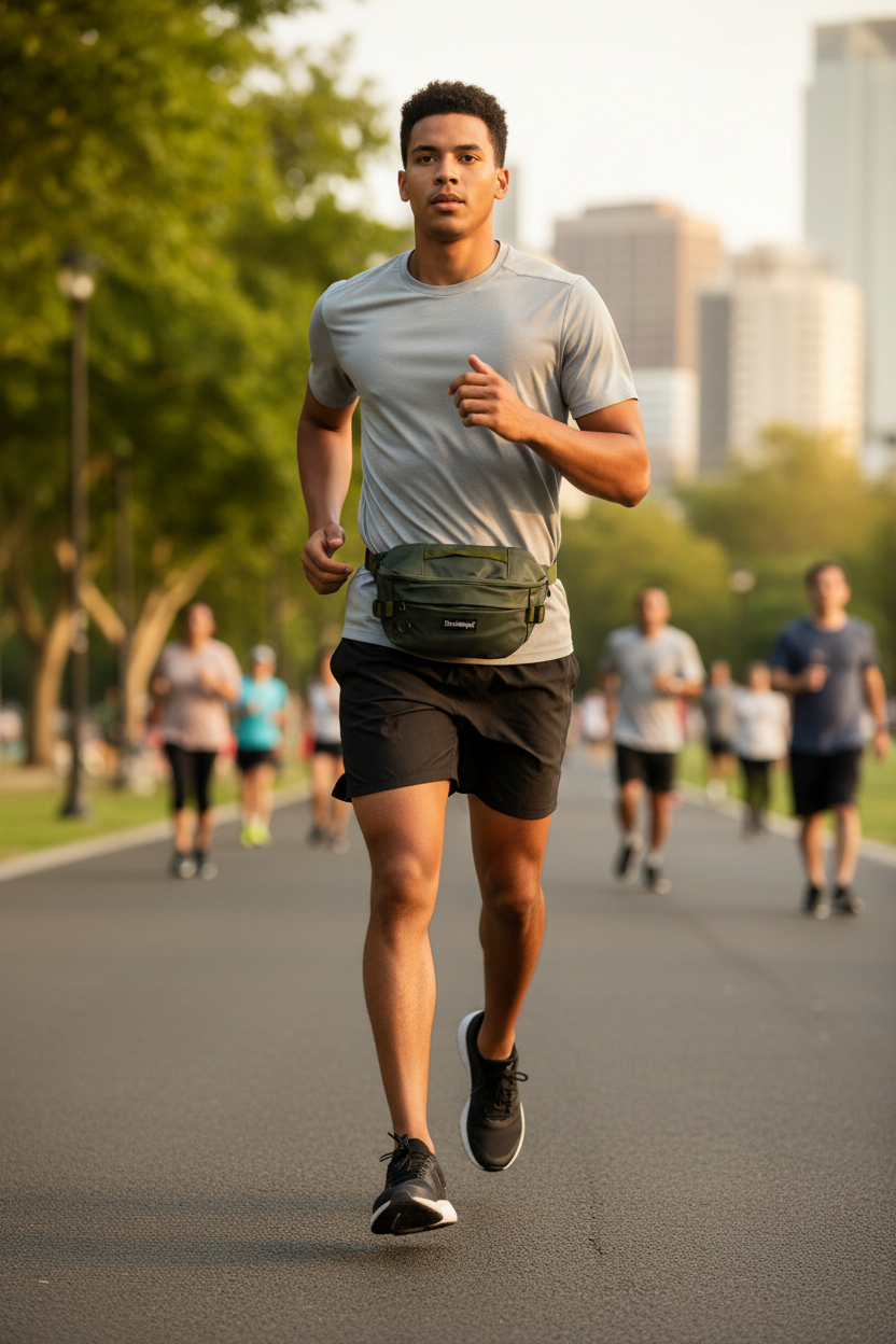Riñonera Ocn Ona Verde en tela Cordura resistente. Dos cierres frontales, cierre trasero y correa ajustable para máxima comodidad y organización. Perfecta para viajes y actividades diarias.