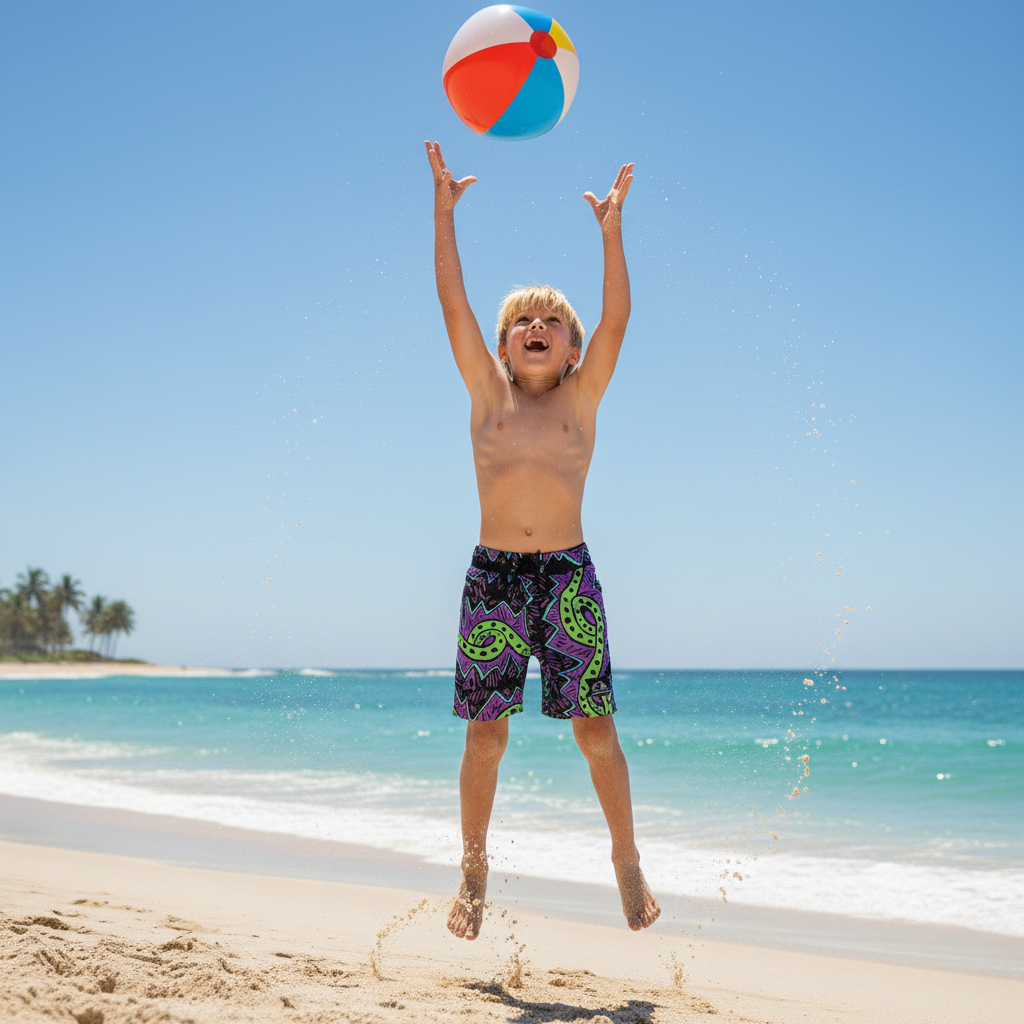 Short de baño Quiksilver Kids Volley Next en violeta con estampado. Confeccionado en microfibra resistente, ofrece cobertura y durabilidad para días de playa y piscina. Diseño versátil de 14 pulgadas, perfecto para niños activos que buscan comodidad y estilo en el agua.