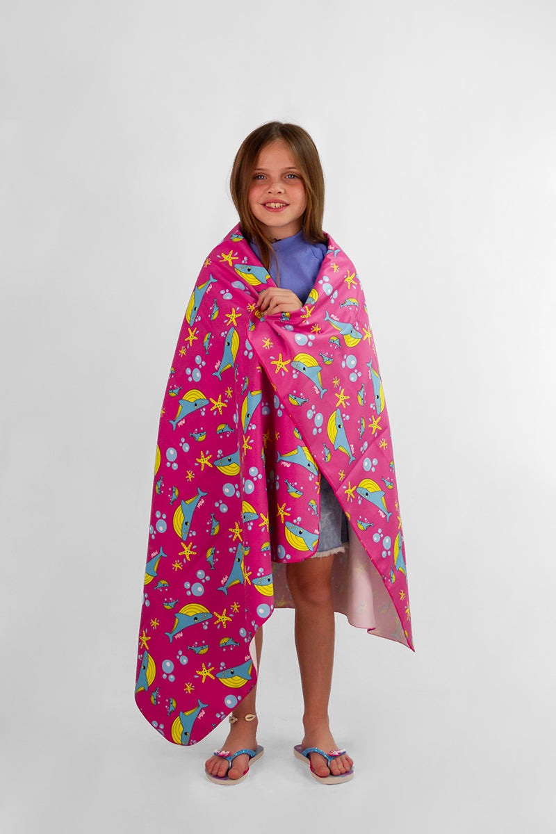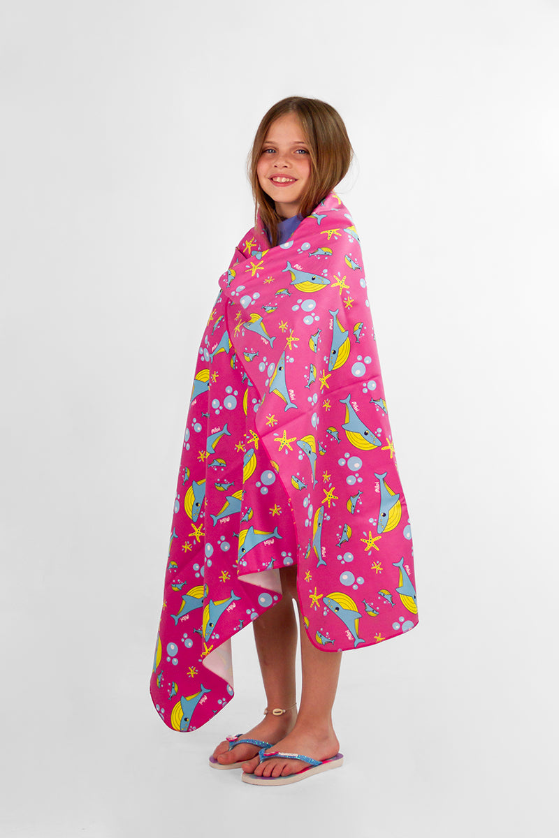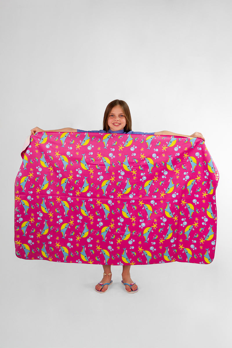 Toalla Mibi Bubble Rosa de microfibra extra absorbente y secado rápido. Tamaño generoso de 150x90 cm, perfecta para playa o piscina. Liviana y versátil, lávala antes del primer uso.
