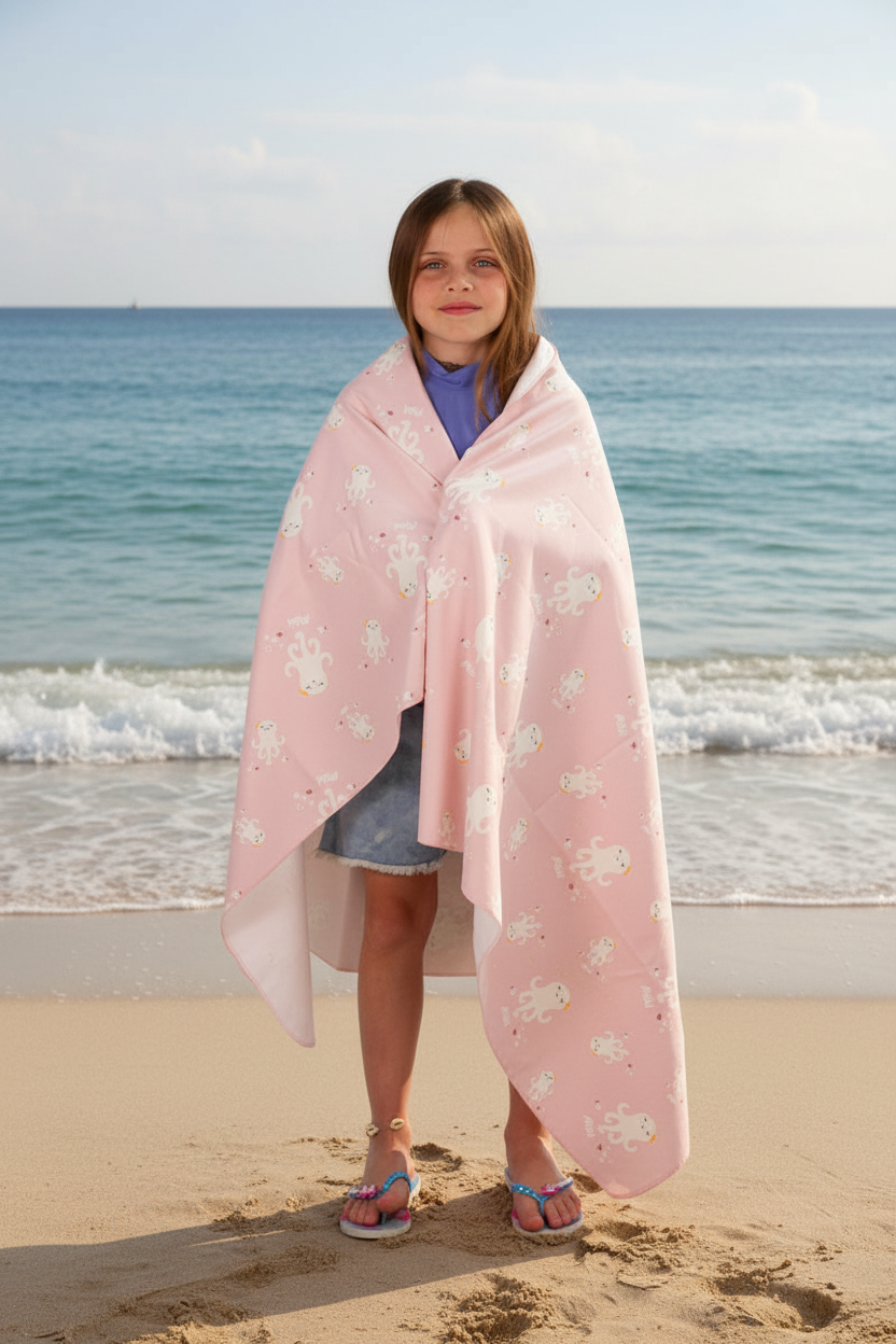 Toalla de microfibra extra absorbente y secado rápido. Tamaño grande (150x90 cm) perfecta para playa o piscina. Liviana y versátil, ideal como manta también. Lavar antes del primer uso.