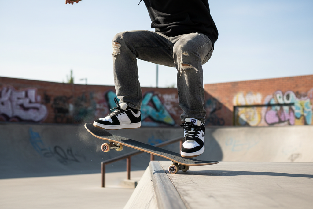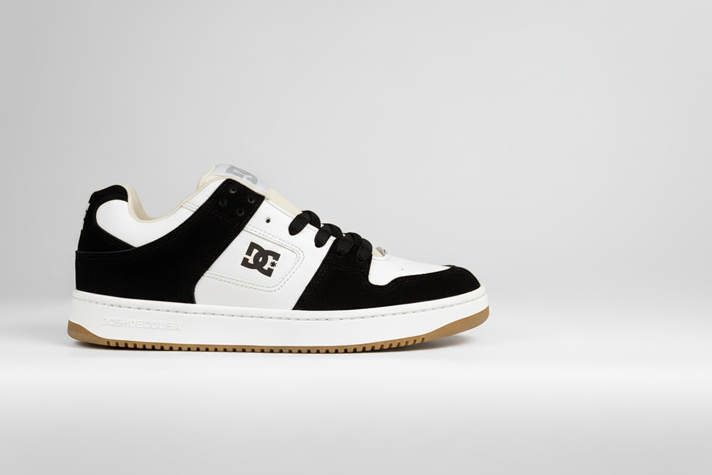 Capellada de Sintético o Nobuck + Cuello y lengüeta con espuma acolchada para máximo confort y soporte + Diseño Pill Pattern de DC en pisada + Suela Cupsole de caucho resistente a la abrasión con costura alrededor, proveyendo mayor durabilidad y resistencia